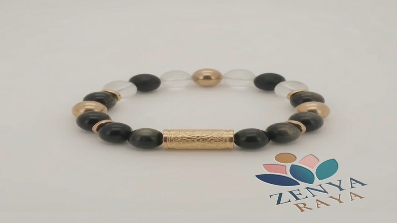 To preserve the beauty and energy of your Zenya Raya bracelet, avoid prolonged contact with water, perfumes, and chemicals. Store it separately in a dry, soft pouch when not in use to prevent scratches and maintain its natural finish. Handle with care to ensure lasting quality.